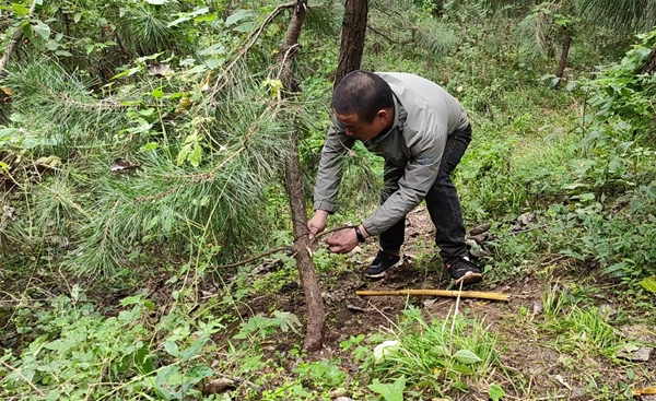 从和王涛的交谈中,记者了解到一些他总结出的安全巡山“土方子”:每走一段路,一旦在山坡上发现动物的粪便、蹄印,一定要吼几声山里的号子,野生动物就会避而远之;在植被茂密的潮湿山坡上要提前将裤腿扎进袜子里,以免被蚂蟥袭扰;在枯树上发现的各类野生菌类,尤其是肉肥型好色艳无昆虫咬食过得痕迹,千万不能采摘食用;进入林子时口袋要装几瓣大蒜,可以有效缓解马蜂的叮咬和肠胃不舒服。